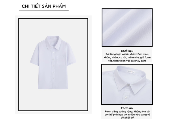 - Áo sơ mi trẻ em được thiết kế thoải mái, dễ vận động giúp bé thoải mái chạy nhảy, học tập hoặc vui chơi mà không bị cản trở cử động
