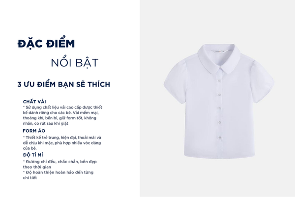 - Áo sơ mi trẻ em được thiết kế thoải mái, dễ vận động giúp bé thoải mái chạy nhảy, học tập hoặc vui chơi mà không bị cản trở cử động