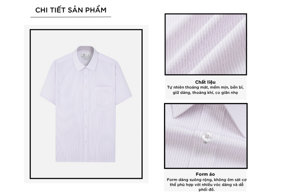 - Áo sơ mi ngắn tay nam được thiết kế theo phong cách hiện đại, tinh tế, sang trọng lịch lãm dành riêng cho nam giới yêu thích sự chỉn chu nhưng vẫn thoải mái trong mọi hoạt động. Tay áo có thể xắn lên để tạo sự năng động, trẻ trung