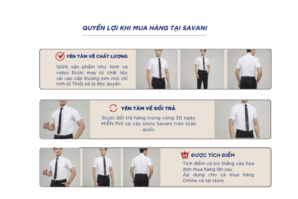 - Hỗ trợ đổi hàng trong vòng 30 ngày và miễn phí tại tất cả chi nhánh thuộc hệ thống thời trang Savani.