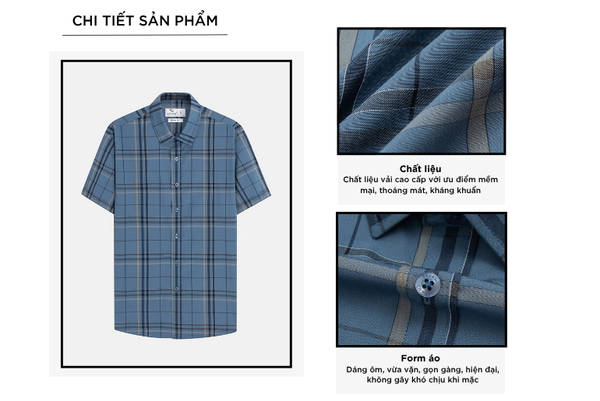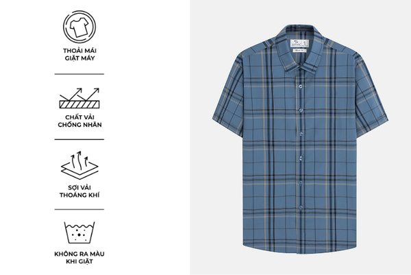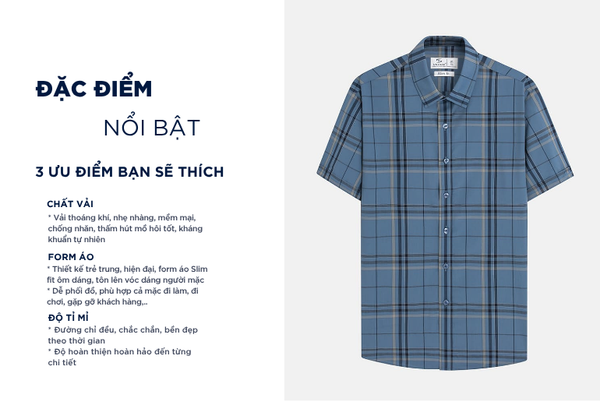 - Áo sơ mi ngắn tay nam được thiết kế theo phong cách hiện đại, tinh tế, sang trọng lịch lãm dành riêng cho nam giới yêu thích sự chỉn chu nhưng vẫn thoải mái trong mọi hoạt động.