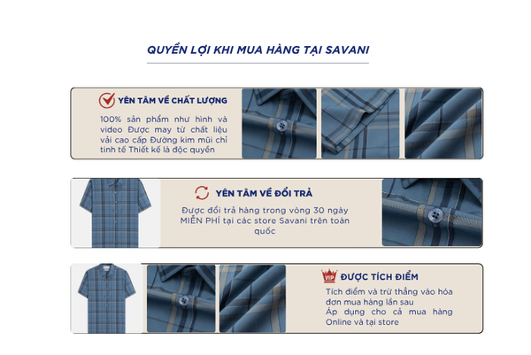 - Hỗ trợ đổi hàng trong vòng 30 ngày và miễn phí tại tất cả chi nhánh thuộc hệ thống thời trang Savani.