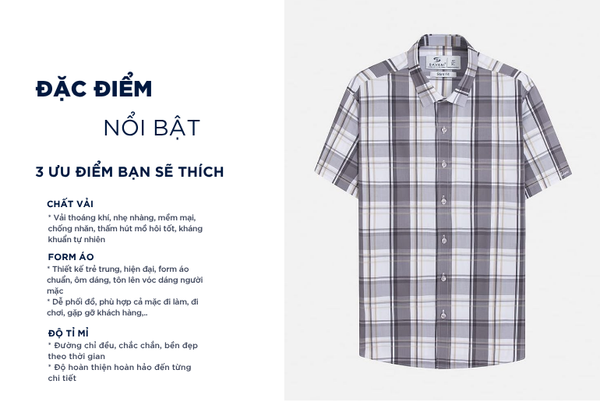 - Áo sơ mi ngắn tay nam được thiết kế theo phong cách hiện đại, tinh tế, sang trọng lịch lãm dành riêng cho nam giới yêu thích sự chỉn chu nhưng vẫn thoải mái trong mọi hoạt động.