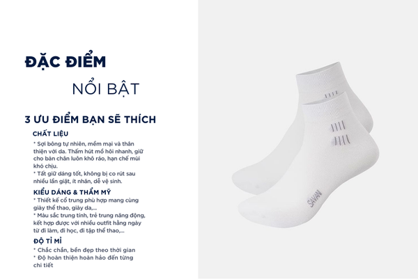 Tất cổ trung nam là một trong những sản phẩm tiên phong được Savani đặc biệt chú trọng về chất liệu. Sự kết hợp giữa 5 chất liệu cao cấp với các ưu điểm mềm mại, bền chắc, thấm hút tốt, không bị co rút, ôm chân giúp thoải mái khi vận động.