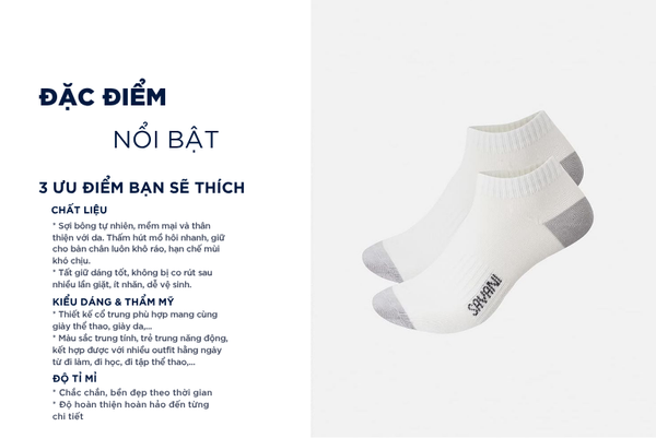 - Thiết kế ôm vừa vặn bàn chân, phần thân tất chỉ cao ngang hoặc thấp hơn mắt cá chân