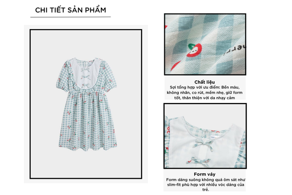 - Màu sắc trẻ trung, thanh lịch phù hợp cho các bé mặc đi chơi, đi ăn, đi dự tiệc, đi học,...